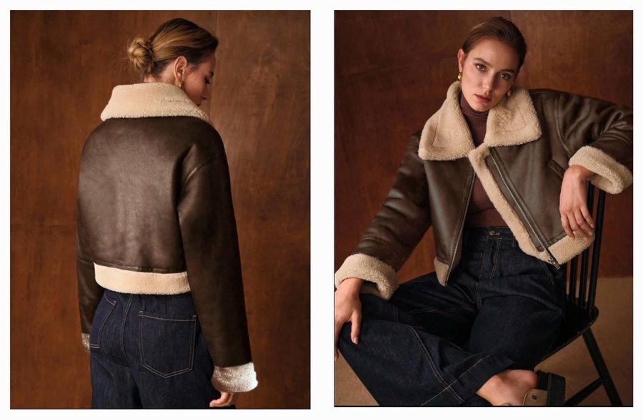 جاكت جلد مبطن فرو نسائي